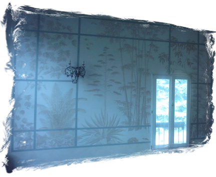 "Giardini d'inverno" parete decoratata a mano con tecnica trompe l’oeil,realizzata per una villa stile '900